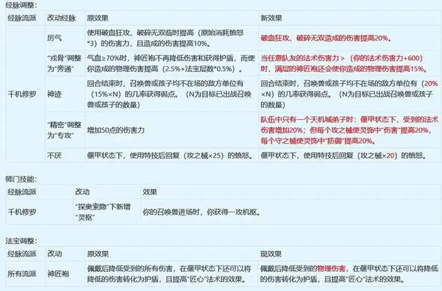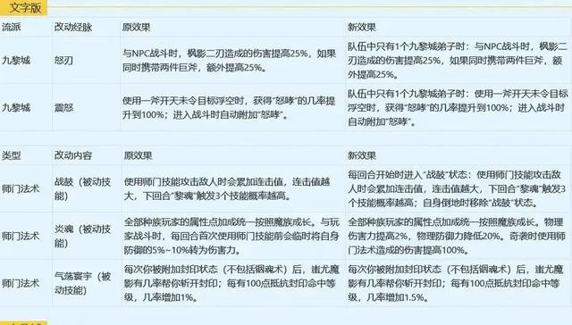 ①、门派特色。新效果:造成的暴击伤害提高2%;受到的暴击伤害降低2%。